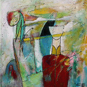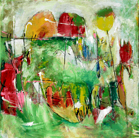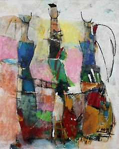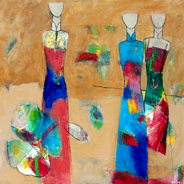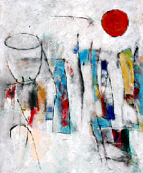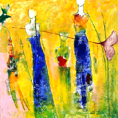 20 Bilder in Misch-Technik, 10 Papier-Kollagen und 2 Textilarbeiten.
