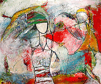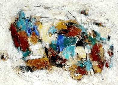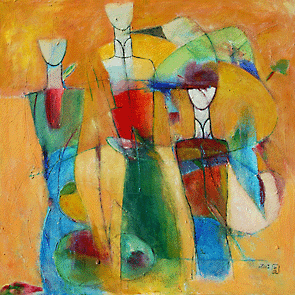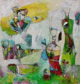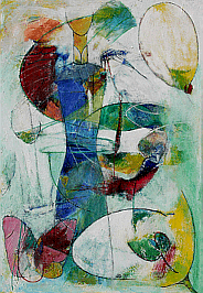 20 Bilder in Misch-Technik, 10 Papier-Kollagen und 2 Textilarbeiten.