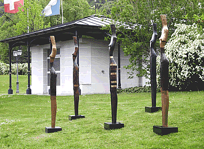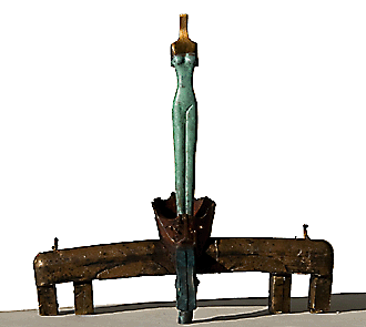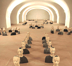 Sie umfaßt 10 Installationen, 14 Bronze-Skulpturen, 10 Drucke auf gefaltetem Stahl,